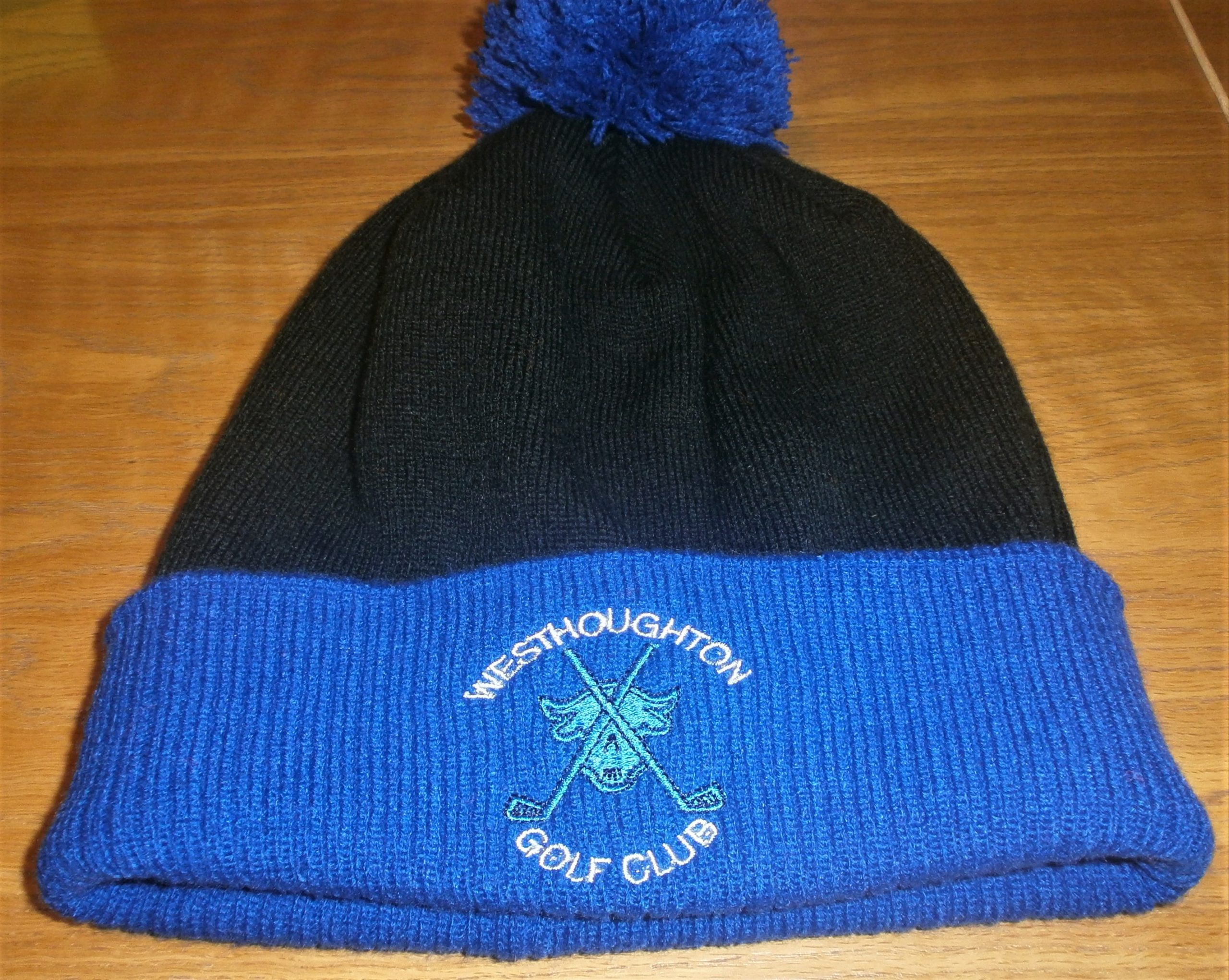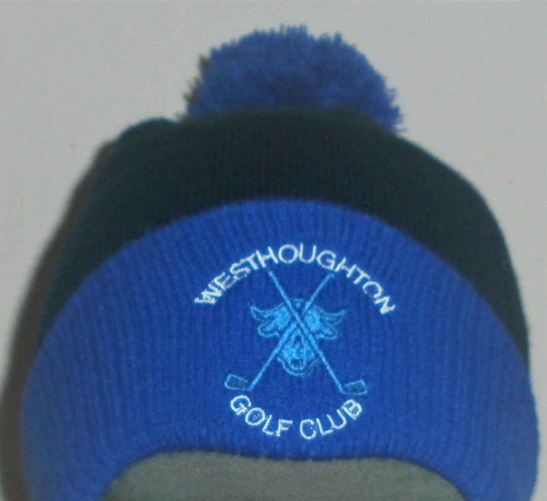 Two Tone Beanie with Pom Pom embroidered with Westhoughton Golf Club Logo